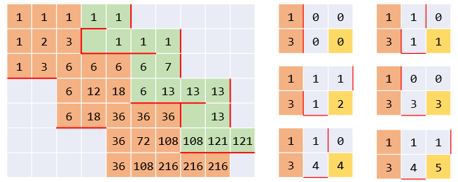 CF1546E:排除线索是,若某一列一种数恰好只有一个那就可以确定对应排列一定在拉丁方里,同时可以排除与它有冲突的一些排列。这样,每时每刻剩余的排列一定是 个拉丁方内的, 个拉丁方外的,并且每个外部的一定对应 个内部的中的一个()。如果无法排除,则每列都有 种数,且每种数 个,由鸽巢原理,,同时如果找到了一组拉丁方的剩余 行,那它的补集也是合法的剩余 行。因此可以随便选一个排列固定选它,答案 ,继续递归处理。