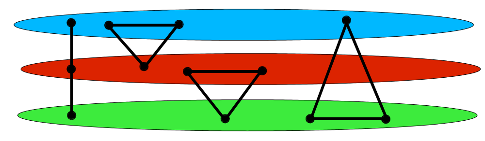 时考虑拿出一个点 ,剩余平分三组。将组内边消光后应当还剩余组间的 条边以及与 的 条边。取 $a_{i,j}\equiv\begin{cases}\frac{(i+j)\bmod 2k}{2},&2\mid(i+j)\\\frac{(i+j)\bmod 2k+2k-1}{2},&2\nmid(i+j)\end{cases}$,这样相邻层间只剩下 和 (),可以处理掉。