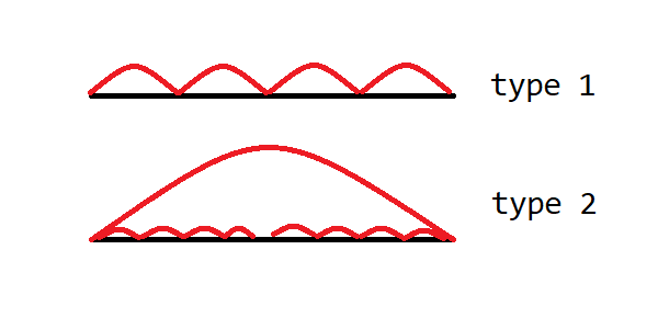 一种是在两种类型之间交替 dp,type 1 按方式 3 转移,type 2 找中间断点。另一种是只对 type 2 dp,即先逐步确定左侧的子结构,到达断点后再右侧(如果每次随意转移左右侧则会计重)。
