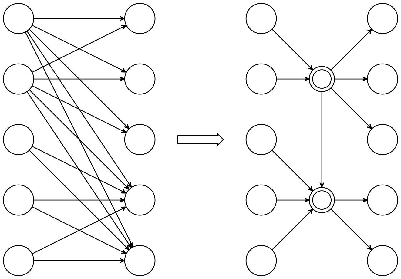 这个优化范围比较广,也没有固定的模式。前后缀优化可以视作这个的子集。多步拆单步的核心思想就是构造中间状态去“合并”转移,在 dp 设计思路也提到过,在可以单步时,单步往往比断点优。这张图很直观地展现了其原理,很像某些建图优化。
